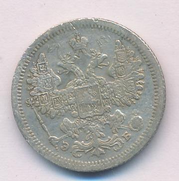 Лицевая сторона — гербовый орел, оборотная —обозначение номинала (15 копеекъ), окруженное венком из лавровой и дубовой ветвей и дата.