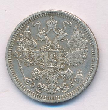 Лицевая сторона — гербовый орел, оборотная —обозначение номинала (15 копеекъ), окруженное венком из лавровой и дубовой ветвей и дата.