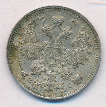 Лицевая сторона — гербовый орел, оборотная —обозначение номинала (15 копеекъ), окруженное венком из лавровой и дубовой ветвей и дата.