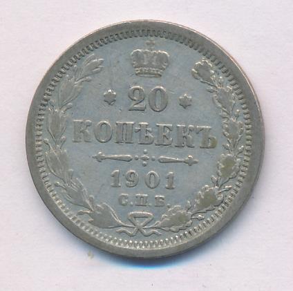 Лицевая сторона — гербовый орел, оборотная —обозначение номинала (20 копеекъ), окруженное венком из лавровой и дубовой ветвей и дата.