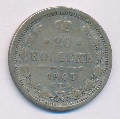 Лицевая сторона — гербовый орел, оборотная —обозначение номинала (20 копеекъ), окруженное венком из лавровой и дубовой ветвей и дата.