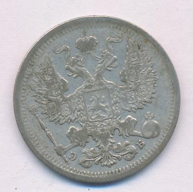 Лицевая сторона — гербовый орел, оборотная —обозначение номинала (20 копеекъ), окруженное венком из лавровой и дубовой ветвей и дата.