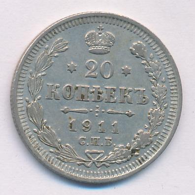Лицевая сторона — гербовый орел, оборотная —обозначение номинала (20 копеекъ), окруженное венком из лавровой и дубовой ветвей и дата.