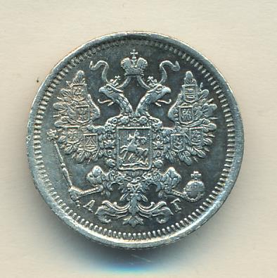 Лицевая сторона — гербовый орел, оборотная —обозначение номинала (15 копеекъ), окруженное венком из лавровой и дубовой ветвей и дата.