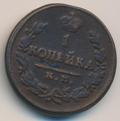 Лицевая сторона — двуглавый орел и дата; оборотная - номинал (1 копейка) в венке из лавровой и дубовой ветвей. Нормативный вес — 6,83 грамма, гурт — гладкий или шнур.
