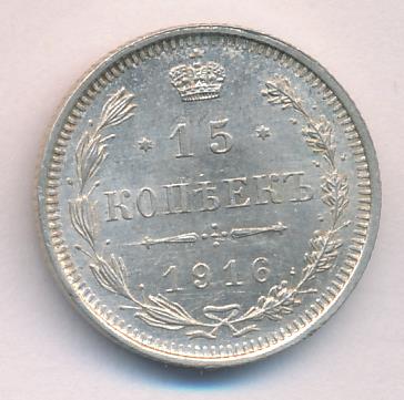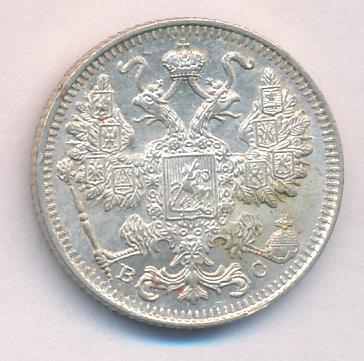 Лицевая сторона — гербовый орел, оборотная —обозначение номинала (15 копеекъ), окруженное венком из лавровой и дубовой ветвей и дата.