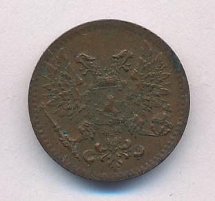 Лицевая сторона — вензель Александра II, оборотная — номинал (1 PENNIA) и дата. Нормативный вес — 1,28 грамма, гурт гладкий.