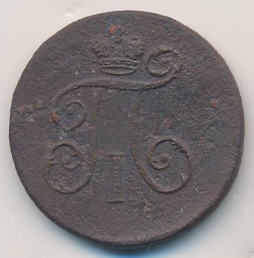 Лицевая сторона — вензель Павла I под короной, оборотная — номинал (1 деньга) и дата. Нормативный вес — 5,12 грамма, гурт — шнур.