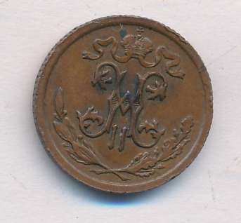 Лицевая сторона — вензель Александра II в венке из лавровой и дубовой ветвей; оборотная — обозначение номинала (1/2 копейки) и дата. Нормативный вес — 1,64 грамма, гурт рубчатый.