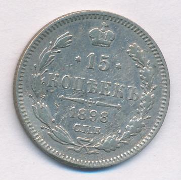 Лицевая сторона — гербовый орел, оборотная —обозначение номинала (15 копеекъ), окруженное венком из лавровой и дубовой ветвей и дата.