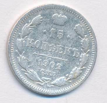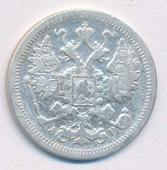 Лицевая сторона — гербовый орел, оборотная —обозначение номинала (15 копеекъ), окруженное венком из лавровой и дубовой ветвей и дата.