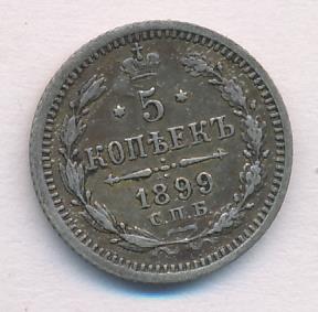Лицевая сторона — гербовый орел, оборотная —обозначение номинала (5 копеекъ), окруженное венком из лавровой и дубовой ветвей и дата.