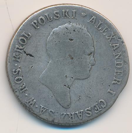 На гербовой стороне золотых, серебряных и медных монет 1816-1835 годов на груди российского орла помещен герб Польского королевства под королевской короной и пологом. В надписи на оборотной стороне серебряных 5, 2 и 1 злотых, кроме номинала, указано их количество в штуках (число с дробью) в серебряной кёльнской марке.