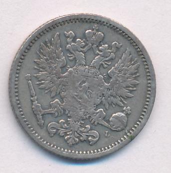 Лицевая сторона — российский двуглавый орел с гербом Великого княжества Финляндского на груди, оборотная — номинал и дата в венке из дубовых листьев. Проба — 750, нормативный вес — 2,55 грамма, гурт рубчатый.