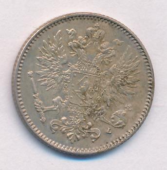 Лицевая сторона — российский двуглавый орел с гербом Великого княжества Финляндского на груди, оборотная — номинал и дата в венке из дубовых листьев. Проба — 750, нормативный вес — 2,55 грамма, гурт рубчатый.