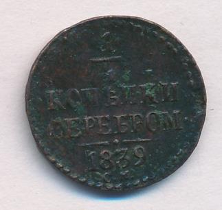Лицевая сторона — вензель Николая I в бусовом ободке, оборотная — надпись «1/4 КОПЕЙКИ СЕРЕБРОМ» и дата. Нормативный вес — 2,56 грамма, гурт гладкий.