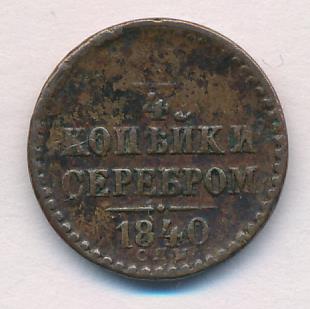 На новых монетах равенство серебряному курсу указано прямо в номинале: «1/4 КОПЕЙКИ СЕРЕБРОМ». Указ об их выпуске следует 6 сентября 1840 года («О новой медной монете на серебро 16-рублевого в пуде достоинства»). Массовая чеканка началось за год до этого на Екатеринбургском (знак ЕМ) и Сузунском (знак СМ) дворах. В качестве временной меры в 1840-1843 годах к ним подключается Ижорский завод (знак СПМ). С 1844 года после «значительного скопления медной монеты в народном обращении» в Екатеринбурге производство прекращается, а в Сузуне сокращается.