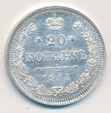 Лицевая сторона — гербовый орел, оборотная —обозначение номинала (20 копеекъ), окруженное венком из лавровой и дубовой ветвей и дата.