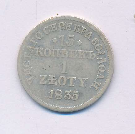 Указом от 15 октября 1832 года «для удобства торговых сношений» Николай I добавляет в ряд серебряных монет новый номинал — 15 копеек, соответствующий одному польскому злотому. Указом от 1 мая 1834 года разрешается чеканка всех номиналов Варшавскому двору. Для организации штемпельного производства из Петербурга 19 июня того же года высылаются рисунки, четыре пары штемпелей и четыре образцовых монеты.
