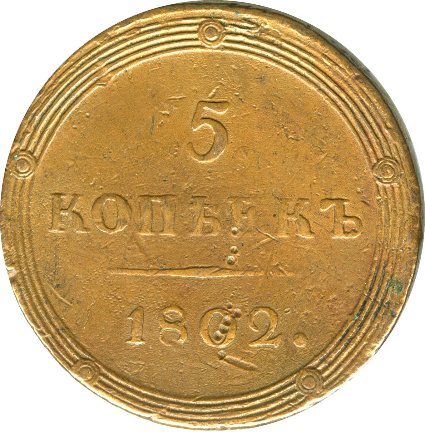 Выделка монет ведется только на Екатеринбургском (знак ЕМ)и Сузунском (знак КМ) дворах, причем в основном пятикопеечников. Номиналы от копейки и ниже выпускаются в очень незначительных количествах. Выделяют пять типов орла — три екатеринбургских и два сузунских; сузунские пятикопеечники 1802 года известны с зубчатым ободком вокруг линейных колец на обеих сторонах и без него, по встречаемости они примерно одинаковы.