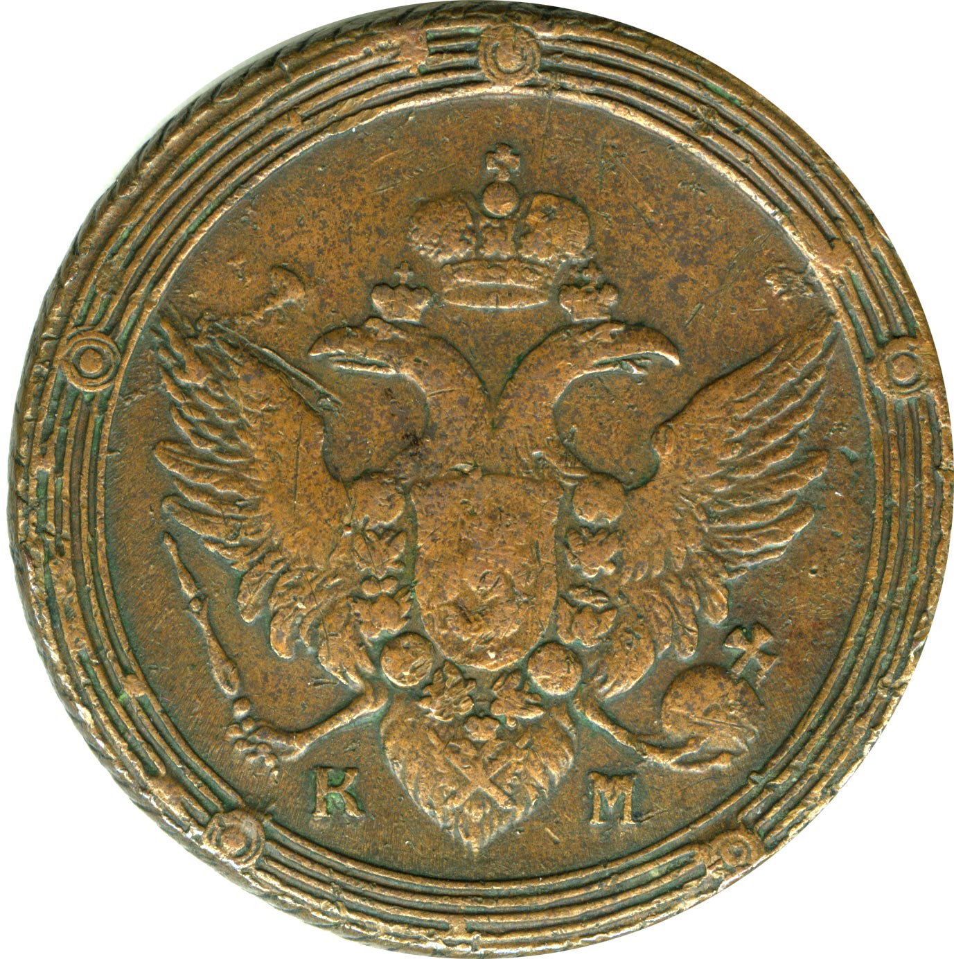 В первое десятилетие правления Александра I медным монетам возвращается принятый при Екатерине II ряд номиналов. Все они оформлены единообразно: на лицевой стороне — двуглавый орел, на оборотной — номинал и дата. Обе стороны обрамлены концентрическими линейными кружками, номинал дополнительно продублирован крупными счетными точками.