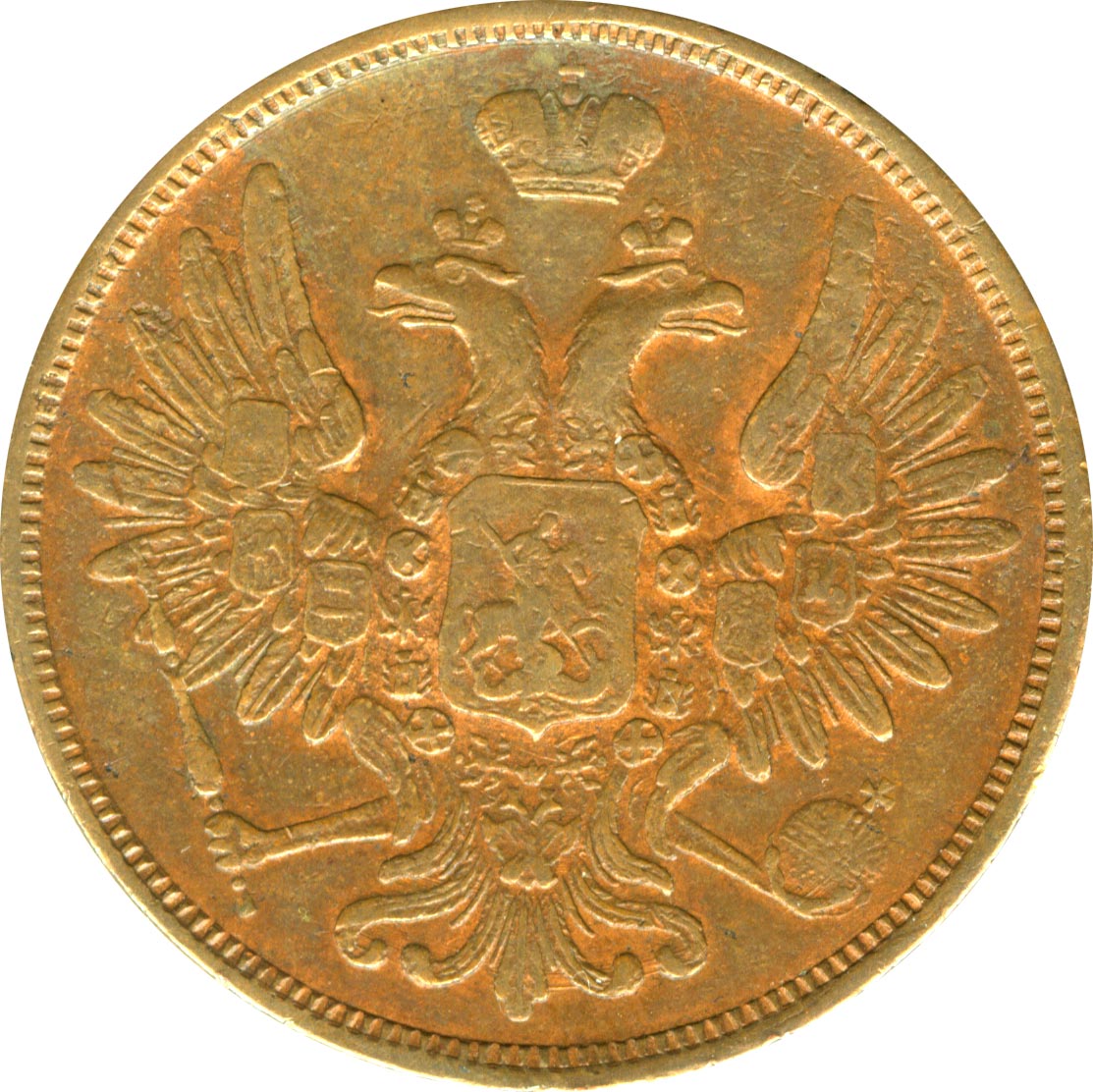 Меры правительства по стабилизации денежного обращения дали свои результаты, и указом от 7 февраля 1849 года следует очередное удвоение монетной стопы до 32 рублей из пуда. Новую монету решено делать улучшенного оформления и повышенного качества изготовления. На лицевую сторону возвращается государственный герб, а все производство ведется только на Екатеринбургском дворе (знак ЕМ), который после 1844 года усиленно перестраивается и переоснащается по образцу Петербургского. С 1850 года к нему подключается Варшавский (знак ВМ), получивший специальное разрешение на выпуск общегосударственной медной монеты. Штемпельный инструмент для обоих дворов готовит Петербургский двор. Новые монеты поступают в обращение только после указа от 23 января 1853 года, после приготовления на общую сумму 870 720 рублей (без учета Варшавской чеканки).