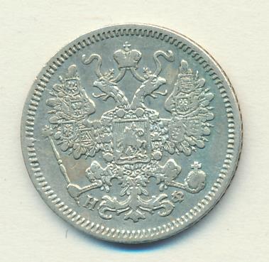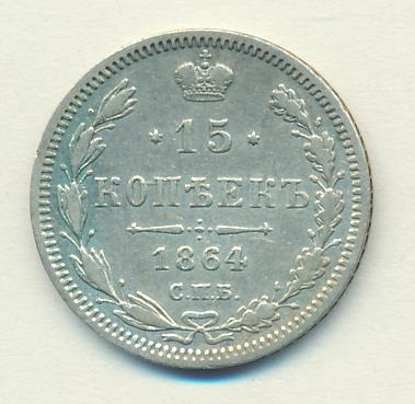 Лицевая сторона — гербовый орел, оборотная —обозначение номинала (15 копеекъ), окруженное венком из лавровой и дубовой ветвей и дата.