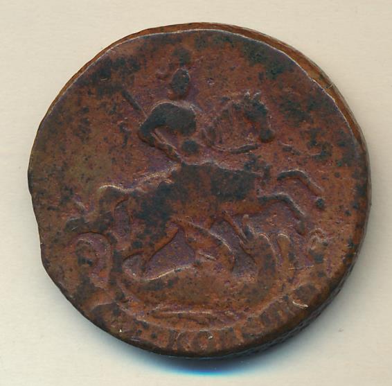 Лицевая сторона — Георгий Победоносец и обозначение номинала (две копейки) в картуше, оборотная — сложный симметричный вензель Елизаветы Петровны и дата. Нормативный вес — 20,48 грамма.