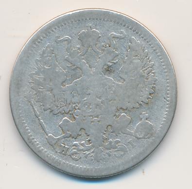 Лицевая сторона — гербовый орел, оборотная —обозначение номинала (20 копеекъ), окруженное венком из лавровой и дубовой ветвей и дата.