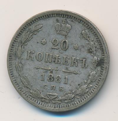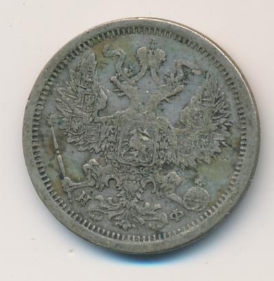 Лицевая сторона — гербовый орел, оборотная —обозначение номинала (20 копеекъ), окруженное венком из лавровой и дубовой ветвей и дата.