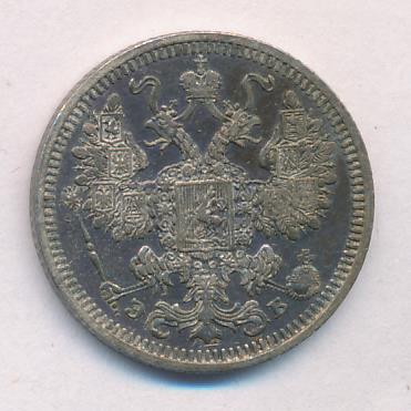 Лицевая сторона — гербовый орел, оборотная —обозначение номинала (15 копеекъ), окруженное венком из лавровой и дубовой ветвей и дата.