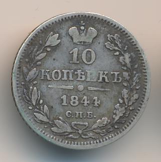 Лицевая сторона — новый гербовый орел с поднятыми крыльями, оборотная —обозначение номинала (10 копеекъ), окруженное венком из лавровой и дубовой ветвей и дата. Проба — 868, нормативный вес — 2,07 грамма.