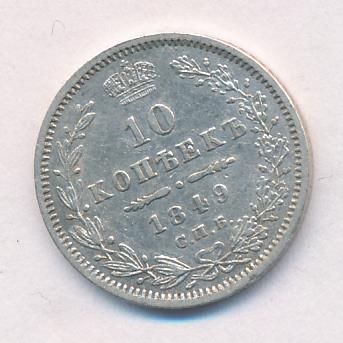 Лицевая сторона — новый гербовый орел с поднятыми крыльями, оборотная —обозначение номинала (10 копеекъ), окруженное венком из лавровой и дубовой ветвей и дата. Проба — 868, нормативный вес — 2,07 грамма.