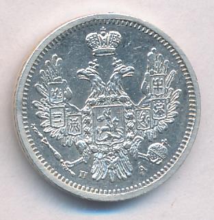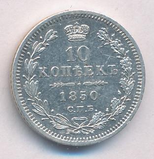 Лицевая сторона — новый гербовый орел с поднятыми крыльями, оборотная —обозначение номинала (10 копеекъ), окруженное венком из лавровой и дубовой ветвей и дата. Проба — 868, нормативный вес — 2,07 грамма.