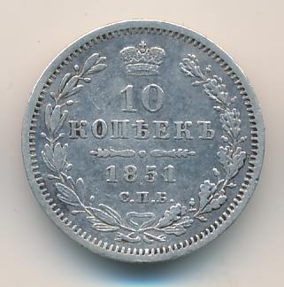 Лицевая сторона — новый гербовый орел с поднятыми крыльями, оборотная —обозначение номинала (10 копеекъ), окруженное венком из лавровой и дубовой ветвей и дата. Проба — 868, нормативный вес — 2,07 грамма.