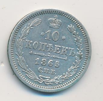 Лицевая сторона — гербовый орел, оборотная —обозначение номинала (10 копеекъ), окруженное венком из лавровой и дубовой ветвей и дата.