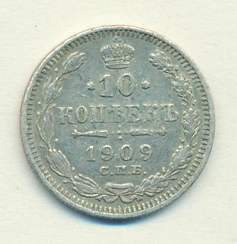 Лицевая сторона — гербовый орел, оборотная —обозначение номинала (10 копеекъ), окруженное венком из лавровой и дубовой ветвей и дата.