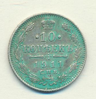 Лицевая сторона — гербовый орел, оборотная —обозначение номинала (10 копеекъ), окруженное венком из лавровой и дубовой ветвей и дата.
