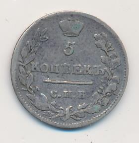 Лицевая сторона - двуглавый орел и дата, оборотная — обозначение номинала (5 копеекъ) в венке из лавровой и дубовой ветвей. Проба до 1813 года — 750, нормативный вес — 1,2 грамма; после 1813 года — проба 868, нормативный вес — 1,04 грамма.