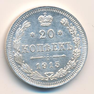 Лицевая сторона — гербовый орел, оборотная —обозначение номинала (20 копеекъ), окруженное венком из лавровой и дубовой ветвей и дата.