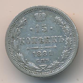 Лицевая сторона — гербовый орел, оборотная —обозначение номинала (15 копеекъ), окруженное венком из лавровой и дубовой ветвей и дата.