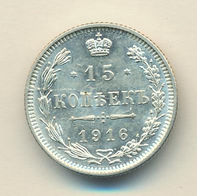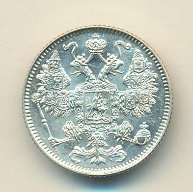 Лицевая сторона — гербовый орел, оборотная —обозначение номинала (15 копеекъ), окруженное венком из лавровой и дубовой ветвей и дата.