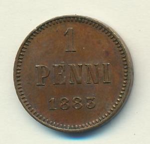 Лицевая сторона — вензель Александра II, оборотная — номинал (1 PENNIA) и дата. Нормативный вес — 1,28 грамма, гурт гладкий.