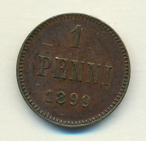 Лицевая сторона — вензель Александра II, оборотная — номинал (1 PENNIA) и дата. Нормативный вес — 1,28 грамма, гурт гладкий.