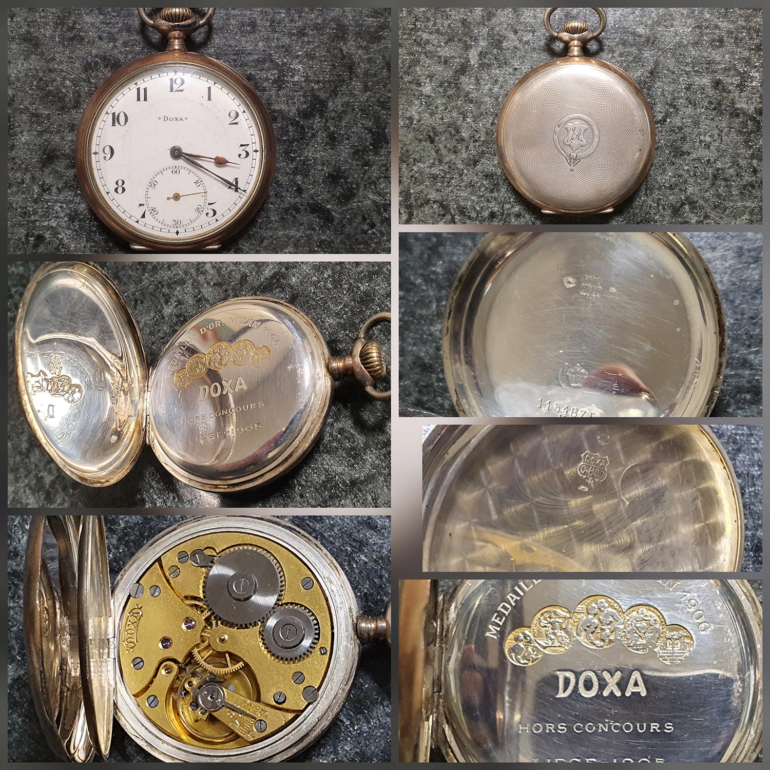 Особенности: На ходу. Диаметр 50мм. Корпус и обе крышки серебро. Общ вес 83 гр. Клеймо: корона, №1154875, Ag800. Механизм DOXA.