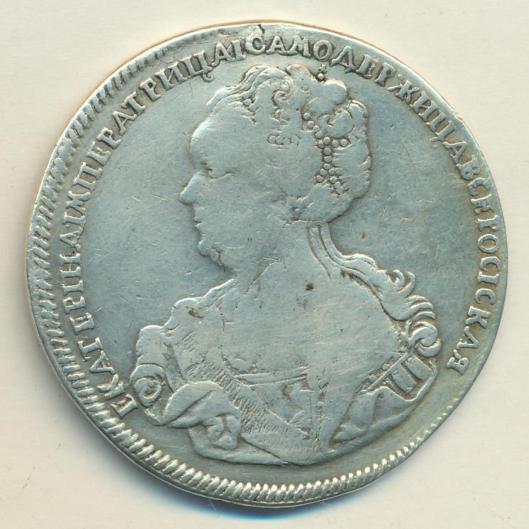 Гурт на монетах Кадашевского двора - «россискоi рубль ея i в (императорского величества) московского двора», гурт на петербургских монетах — узор или шнур. Легенда лицевой стороны - «Екатерина императрица и самодержица всероссийская», оборотной - «Монета новая цена рубль» и дата арабскими цифрами. Проба -729, нормативный вес — 28,44 грамма.