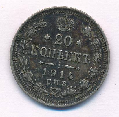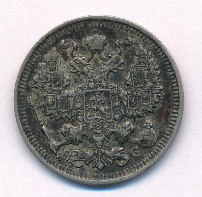 Лицевая сторона — гербовый орел, оборотная —обозначение номинала (20 копеекъ), окруженное венком из лавровой и дубовой ветвей и дата.
