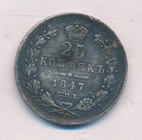 Лицевая сторона — новый гербовый орел с поднятыми крыльями и надпись «ЧИСТОГО СЕРЕБРА 1 ЗОЛОТНИКЪ 5 ДОЛЕЙ», оборотная —обозначение номинала (25 копеекъ), окруженное венком из лавровой и дубовой ветвей и дата.