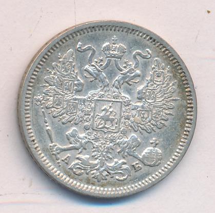 Лицевая сторона — гербовый орел, оборотная —обозначение номинала (20 копеекъ), окруженное венком из лавровой и дубовой ветвей и дата.