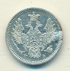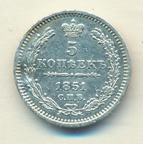 Лицевая сторона — новый гербовый орел с поднятыми крыльями, оборотная —обозначение номинала (5 копеекъ), окруженное венком из лавровой и дубовой ветвей и дата. Проба — 868, нормативный вес — 1,04 грамма.